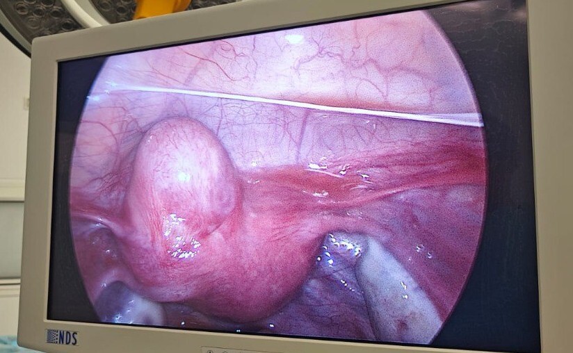 Пациентке провели стандартную лапароскопическую операцию (3 небольших прокола живота). В ходе операции выяснилось, что киста росла из миометрия до серозной оболочки матки. Кисту бережно удалили, послойно и аккуратно восстановили матку с сохранением репродуктивной функции. Удаление эндометриоидной кисты матки технически схоже с удалением эндометриоидной кисты яичника.